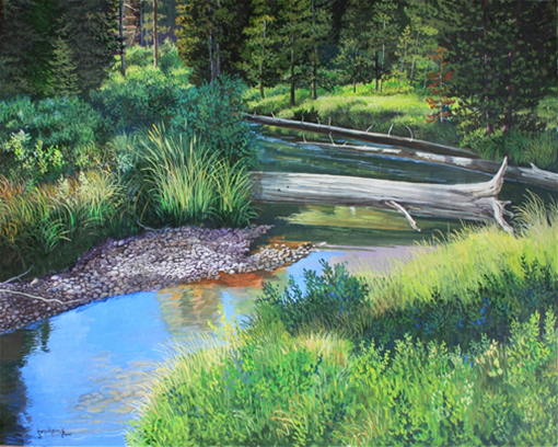 Yellowstone Stream 24 x 30 inches, Gouache Watercolor www.gkeimigart.blogspot.com