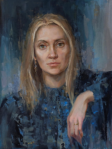 Portrait of a Woman in Blue 69 x 40 cm, Oil on Canvas www.nadiamolugova.com